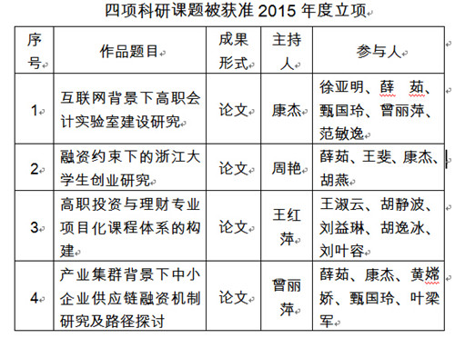 四项科研课题被获准2015年度立项