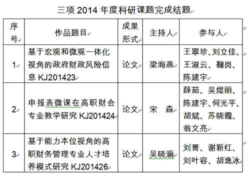 三项2014年度科研课题完成结题